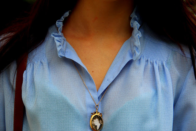 This outfit, albeit a bit country (which seems to be a regular choice for me?!), is I think slightly transitional. The days of bare legs and floaty dresses are done for this year and therefore it is time for jeans and a good pair of boots with woolly socks. Agreed? Good. And even though it's a little bit more chilly, there's still a wee bit of sunshine holding out. Which is why this shirt is so perfect. It's thin, floaty, pretty and simple, all of my favourite things in a garment; and I'm particularly fond of the collar.