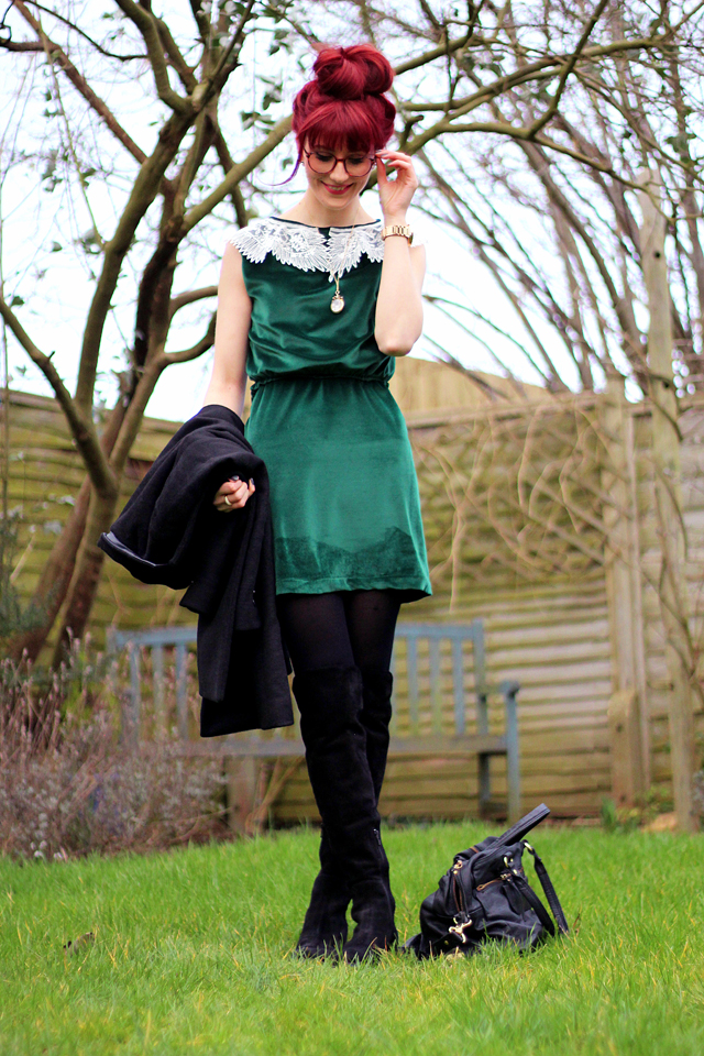 Hat: Ark Clothing. Coat: Miss Patina*. Blouse: Poppy Lux*. Leggings: Zara. Belt: Vintage. Boots: Joules*. |