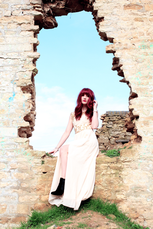 I’ve also tried to inject lighter shades in to my wardrobe recently. Don’t worry – black and grey are still pretty much my favourites. But teamed with my Zara leggings, my Poppy Lux blouse helps to finish off this preppy look and the beaded collar paired with a vintage belt and maroon hat break up the cream shades so that I don’t look too much like a digestive biscuit.